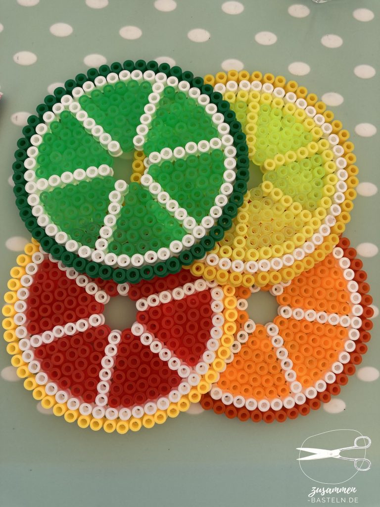 Nicht nur wenn Du die Untersetzer verschenken willst, auch beim „Selbstbehalten“ lohnt es sich, nochmal kurz über das richtige Bügeln nachzudenken! Schaue nochmal auf die Anleitung des Herstellers, die Zeitangaben und die Empfehlung für die Einstellung Deines Bügeleisens. Ich habe es früher immer zu heiß gemacht. Um die Steckplatten zu schonen, sollte nicht zu lange und zu heiß gebügelt werden. Andererseits müssen die Perlen gut zusammenhalten, schließlich sollen sie mindestens die nächsten Parties überstehen. Und dann muss man noch gleichmäßigen leichten Druck ausüben, damit die Untersetzer kein Gefälle in die Ecken erhalten.