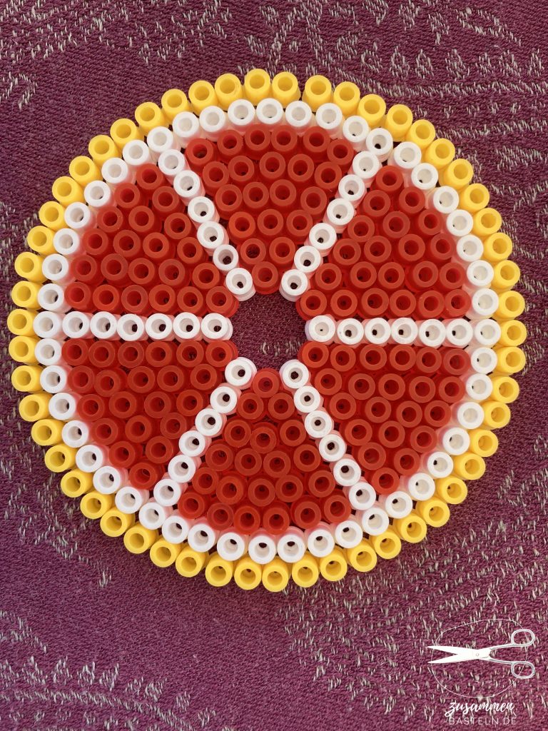 Übrigens sind nicht alle runden Steckplatten geeignet, wenn Du in der Mitte eine Öffnung für den Strohhalm lassen möchtest (manchmal ist die Anordnung der Stifte ungeschickt). Funktionierende Platten habe ich unten verlinkt, und warum ich die Perlen von Hama bevorzuge steht hier auf der Seite „Grundausstattung“.